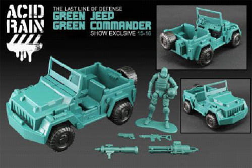 酸雨战争延续2014年的复古绿兵,特别推出复古绿吉普加配有四种武器的指挥官,让大家再次重温童年玩绿色塑料小人的感动。