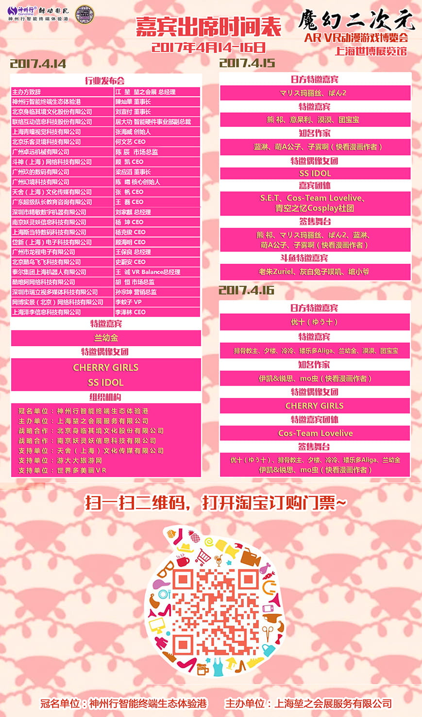 精彩的舞台活动,庞大嘉宾阵容,众多的现场福利,棒到违反广告法的合作企业,尽在神州行-魔幻二次元AR VR动漫游戏博览会。