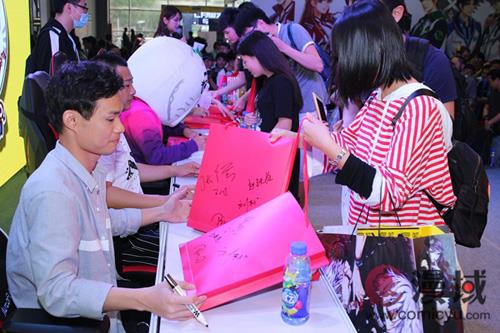 (张全蛋为粉丝签售“狼蛛”键盘)