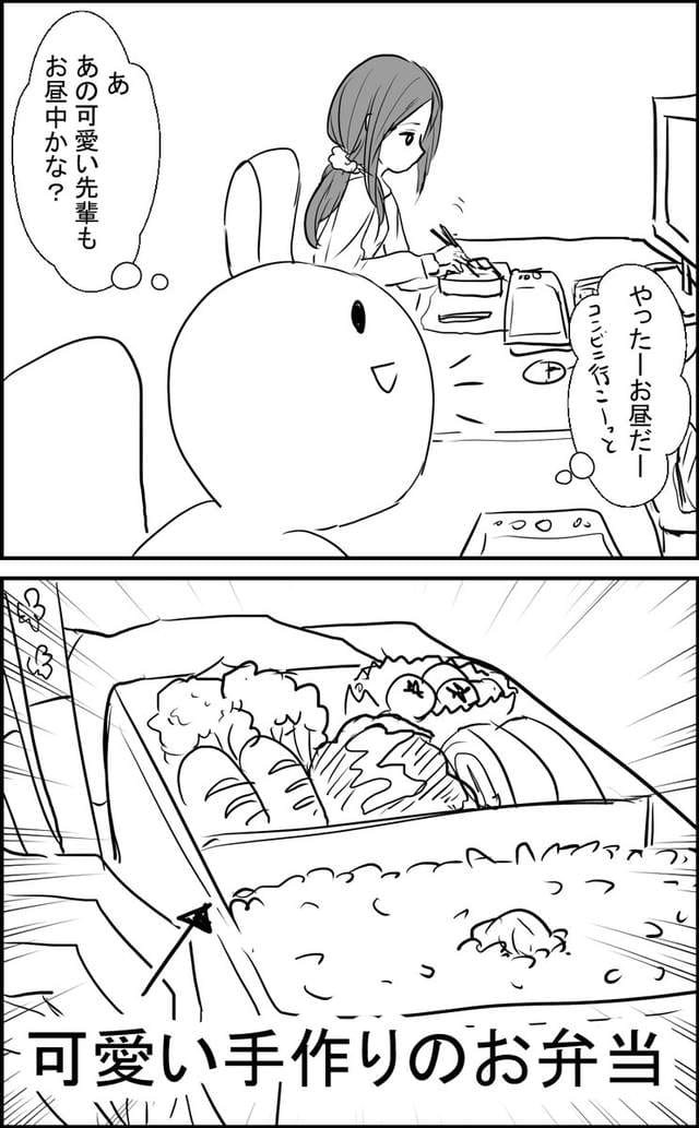 由于这么精緻的便当只做一人份超级不划算,所以天瀬开始怀疑前辈其实已经有男朋友或老公,是帮另一半做便当的时候顺便做自己的……