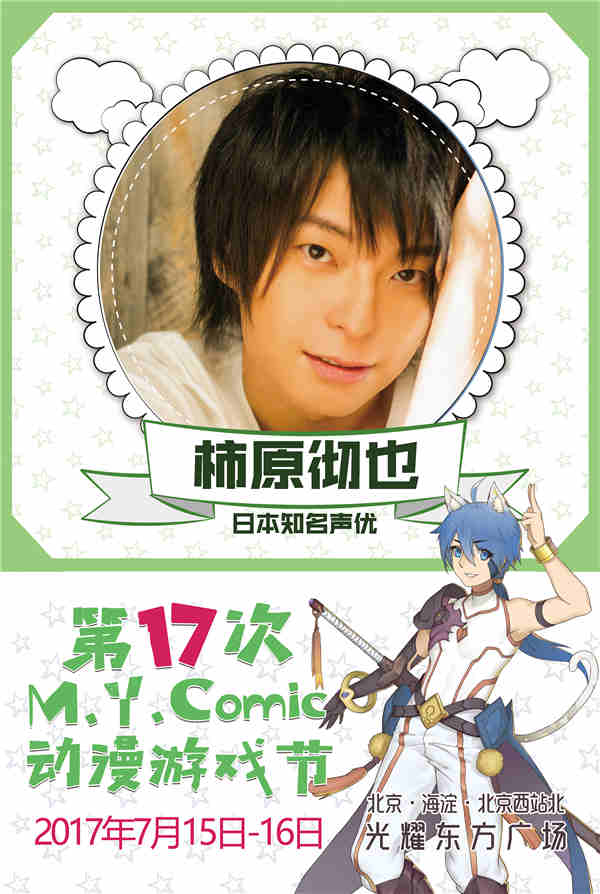知名日本声优柿原彻也、八代拓将在7月16日降临MYC17现场举办见面会哦!