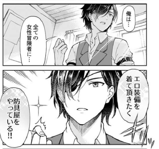 本作虽然以常见的剑与魔法世界为舞台,但这次要描述的故事既不是勇者也不是魔王,而是防具店的职场日常!毫无特殊能力的村人A考兹来到热闹的城镇准备求职,意外发现一家正在徵店员的防具店,好奇走进去瞧瞧却意外目睹对童贞来说太过刺激的画面!