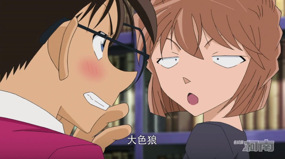 “怪盗基德的机关箱”下篇中小兰为了寻找破解机关箱的线索,踩着椅子准备拿取高层书架上的书籍时,柯南正好经过,不经意间听到小兰说的话而陷入沉思,这个时候柯南正好想到基德伪装的能力而观察小兰,却被小哀抓个正着,吐槽他色狼。