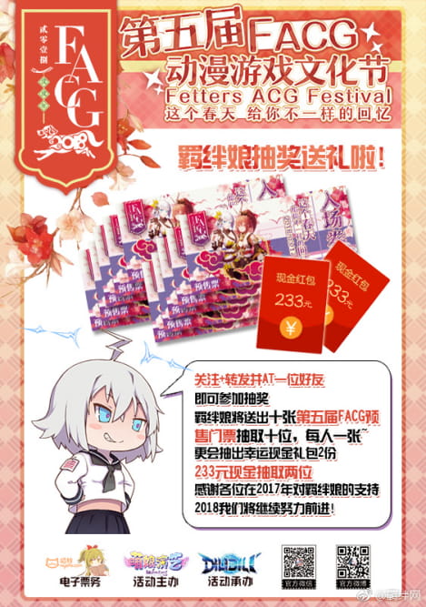 3月17日,福建福州工人文化宫,第五届FACG动漫游戏文化节即将震撼开启!宽阔的场地,热血沸腾的比赛,更有大牌嘉宾齐聚福州,给你带来前所未有的视听盛宴。是不是已经迫不及待了呢,快带上各路小伙伴约约约吧!