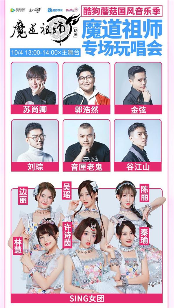 在上海站的酷狗蘑菇·萤火虫动漫音乐嘉年华酷狗蘑菇展位上,除了有隐藏福利掉落以外,还有国风音乐季三场精彩演出:敦煌定若远专场、SING女团见面会、魔道祖师专场玩唱会。