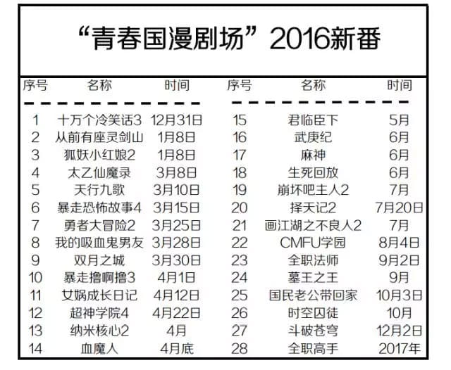 2016年“青春国漫剧场”,我将用最青春,最热血的面貌如约而来。