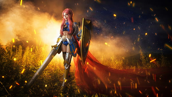 从道具的制作和对原作的还原度来说,该选手的服装道具制作的确是用心,盔甲和武器的质感都可以得到体现。而且在展现角色神态方面来说,也突出了cos角色本身的一种力量与美感。给予了角色的一种内在灵魂。相信在角色理解上下了一番功夫。 在摄影和后期的处理上,也比较自然,不会让人觉得合成的突兀,属于值得推荐的一套作品。