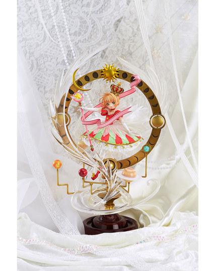 另一个版本则是“木之本樱Stars Bless You”版,这个版本将配上和CLAMP老师原图中一样的豪华底座,全高约450mm,价格为25000日元(约合人民币1563元)。