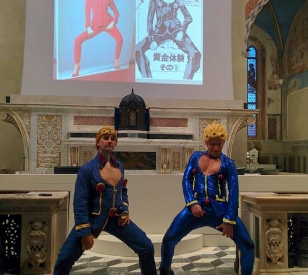 意大利中部托斯卡纳大区残存着中世纪风格的城市卢卡,在10月举办了意大利最大的动漫节日“卢卡国际漫画节”。每年都会有超过30万人从世界各地到来参与这个集会,今年街头巷尾的节日气氛也异常火爆。历史悠久的教会被借用来举办“JOJO立大赛”吸引了游客们的眼球。